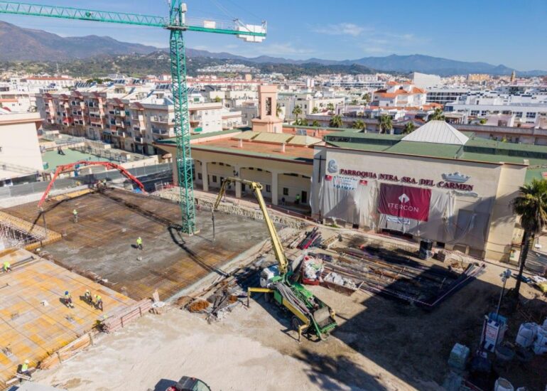 Las obras del aparcamiento público de El Carmen en Estepona completan su estructura con más de 300 plazas en tres plantas subterráneas